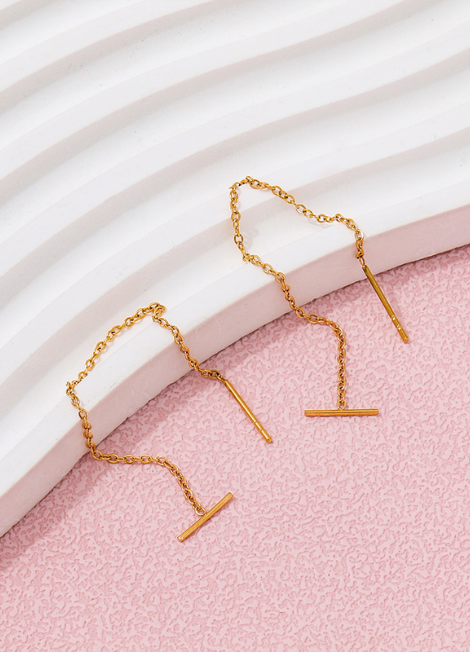 Earrings | Threading Bar | Chain | 18K Gold Plated