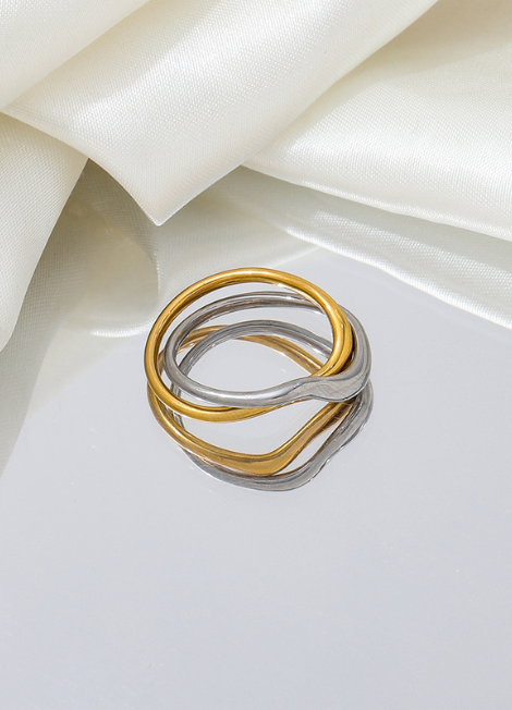 Ring | Tyra Two Tone | Twist Stackable | 18K Gold Plated